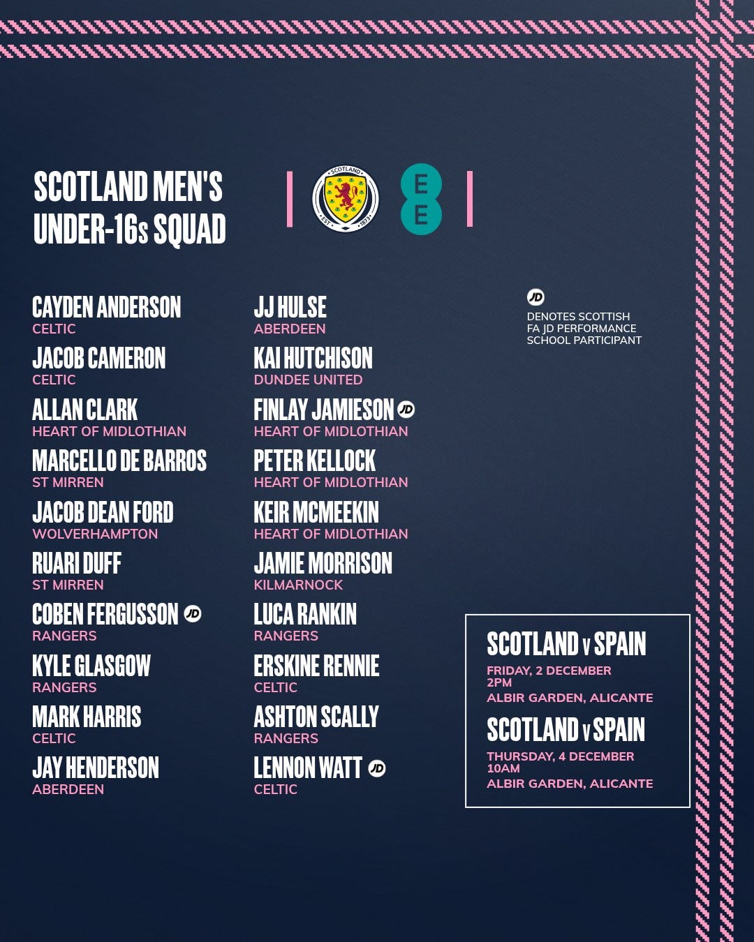 🏴 James Grady has named his Scotland Under-16 squad for two friendlies against Spain. - Scottish FA website