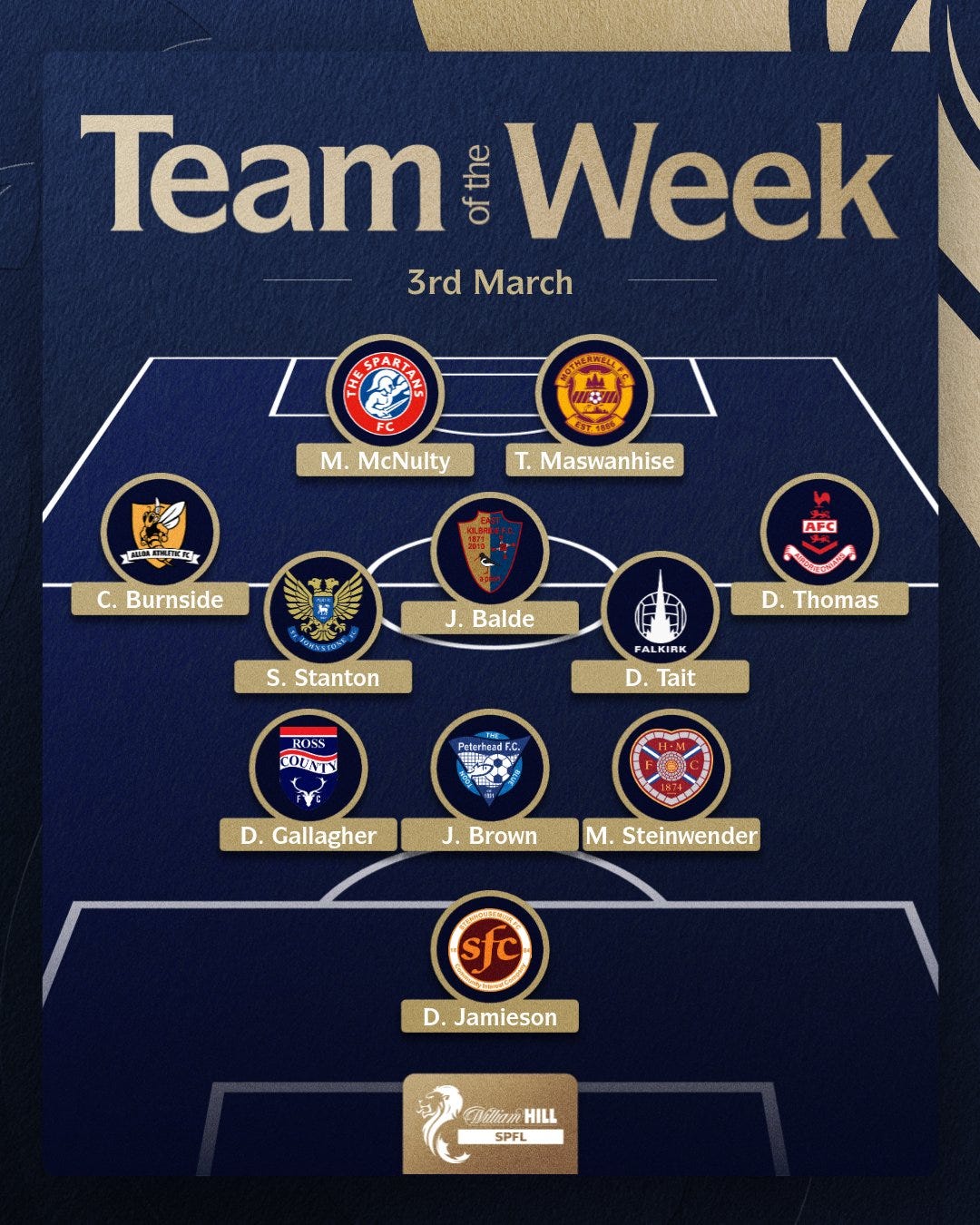 ⭐ The Spartans’ Marc McNulty was named the star man in the SPFL’s Team of the Week after his weekend hat-trick against Annan Athletic. - SPFL website
