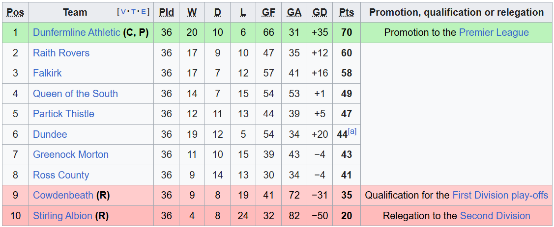 Cowdenbeath have dropped three tiers over the past 15 years. This was the last time Stirling Albion have featured in the second tier.
